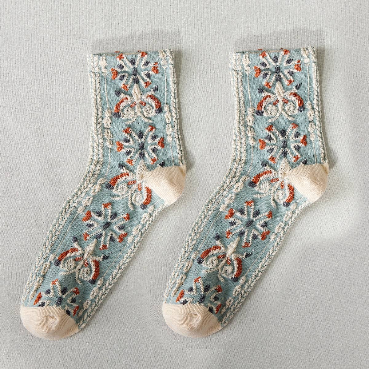 Embrace a bohemian vibe with these vintage embossed socks that effortlessly elevate any look. Perfect for year-round wear, they deliver both comfort and style in every season. Designed to fit most feet comfortably, their one-size-fits-all design ensures easy wear. Crafted with care and ready for immediate purchase, these socks come with dedicated customer support to ensure your satisfaction every step of the way.