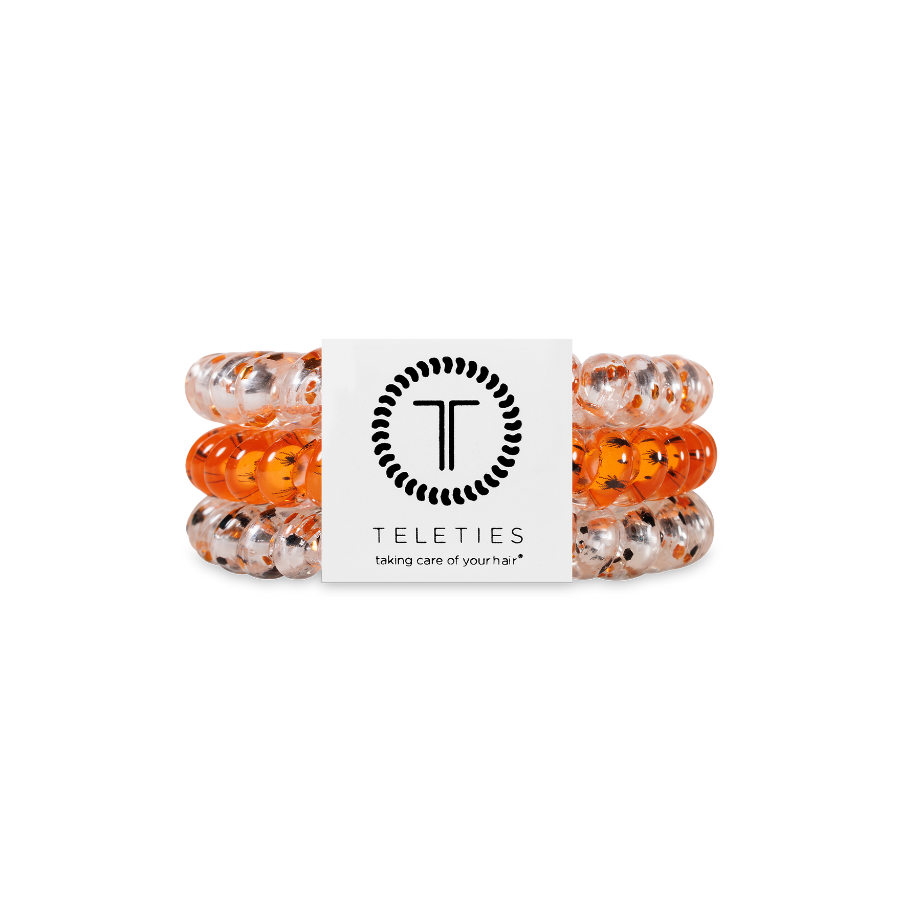 Spooky Sparkles Small Hair Ties in Black and Orange offer a strong grip without damage, doubling as a chic wrist accessory when not in use. Your new favorite hair essentials all year round.