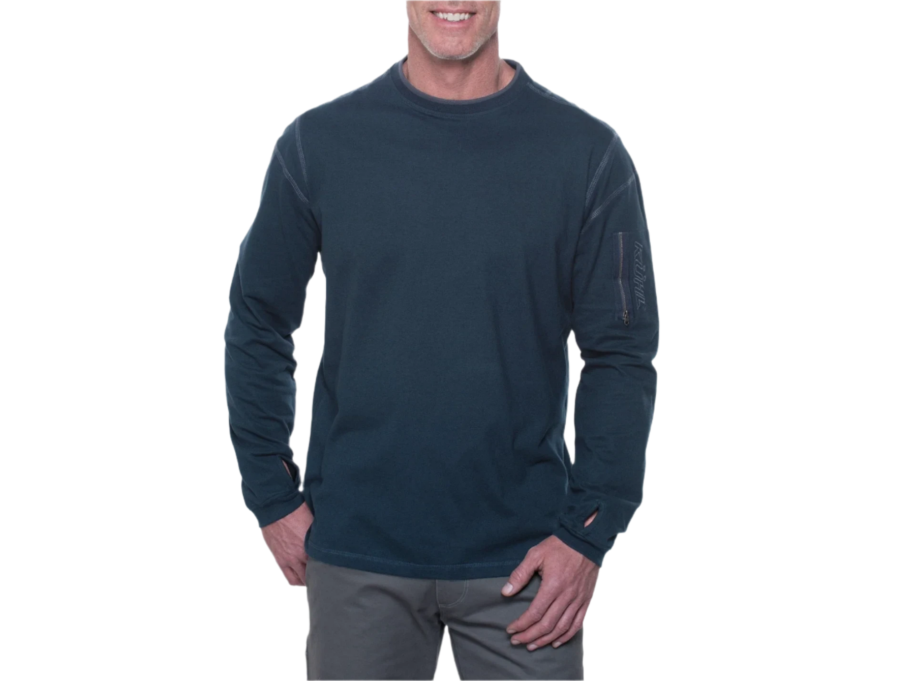 No need to be Special Ops to appreciate the durability and comfort of 100% organic cotton. The KOMMANDO™ delivers easy-care, year-round performance with casual, everyday style. This mid-weight crew neck features our signature thumb loops and a convenient stash pocket on left bicep.