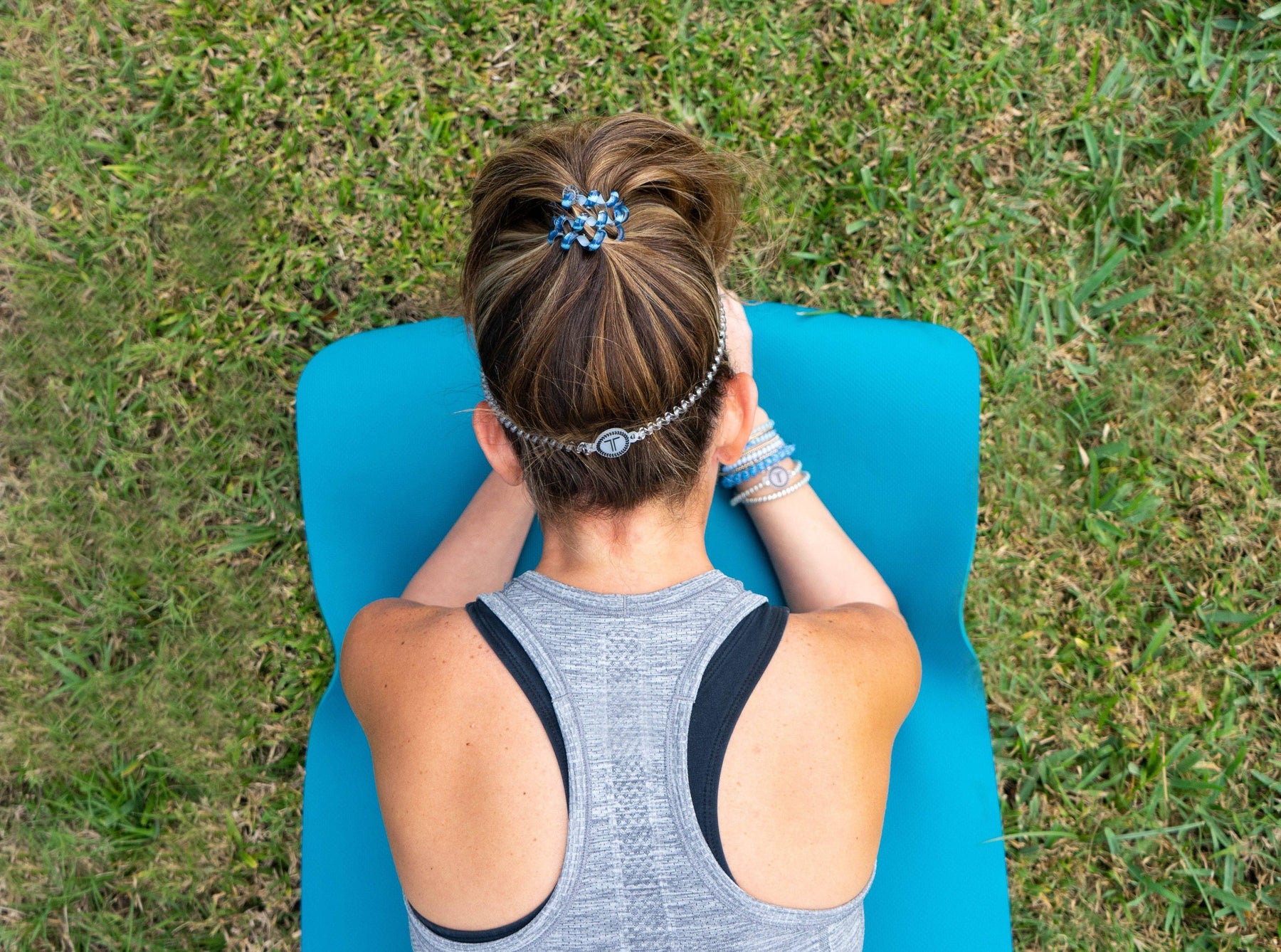 The new TELETIES HEADBAND is both functional and stylish. It features all the benefits of our hair ties paired with a comfortable new rubber branding piece designed to prevent slippage. Wear it just above the back of the neck for the ultimate comfort and hold. The TELETIES HEADBAND looks just as great on your wrist as our original hair ties.