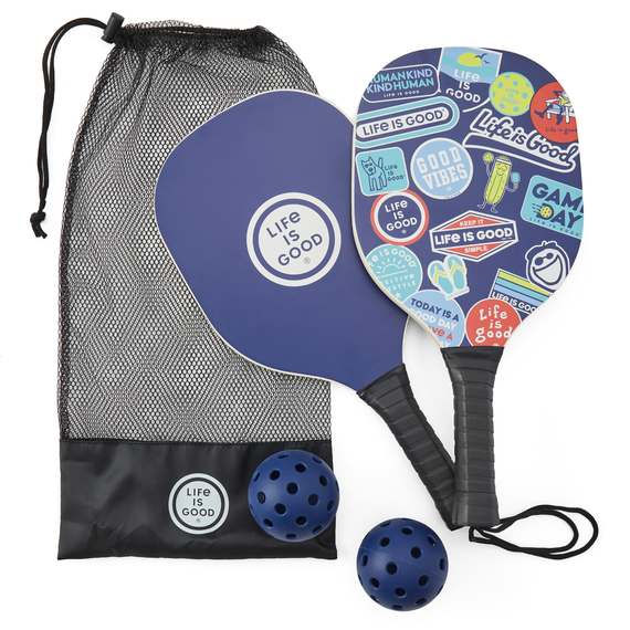 What do you get when America’s original positive lifestyle brand meets America’s fastest-growing sport? The most positivity-packed pickleball set to ever hit the courts. This skillfully-crafted set combines comfort and durability with iconic Life is Good designs, setting you up for peak performance and style.