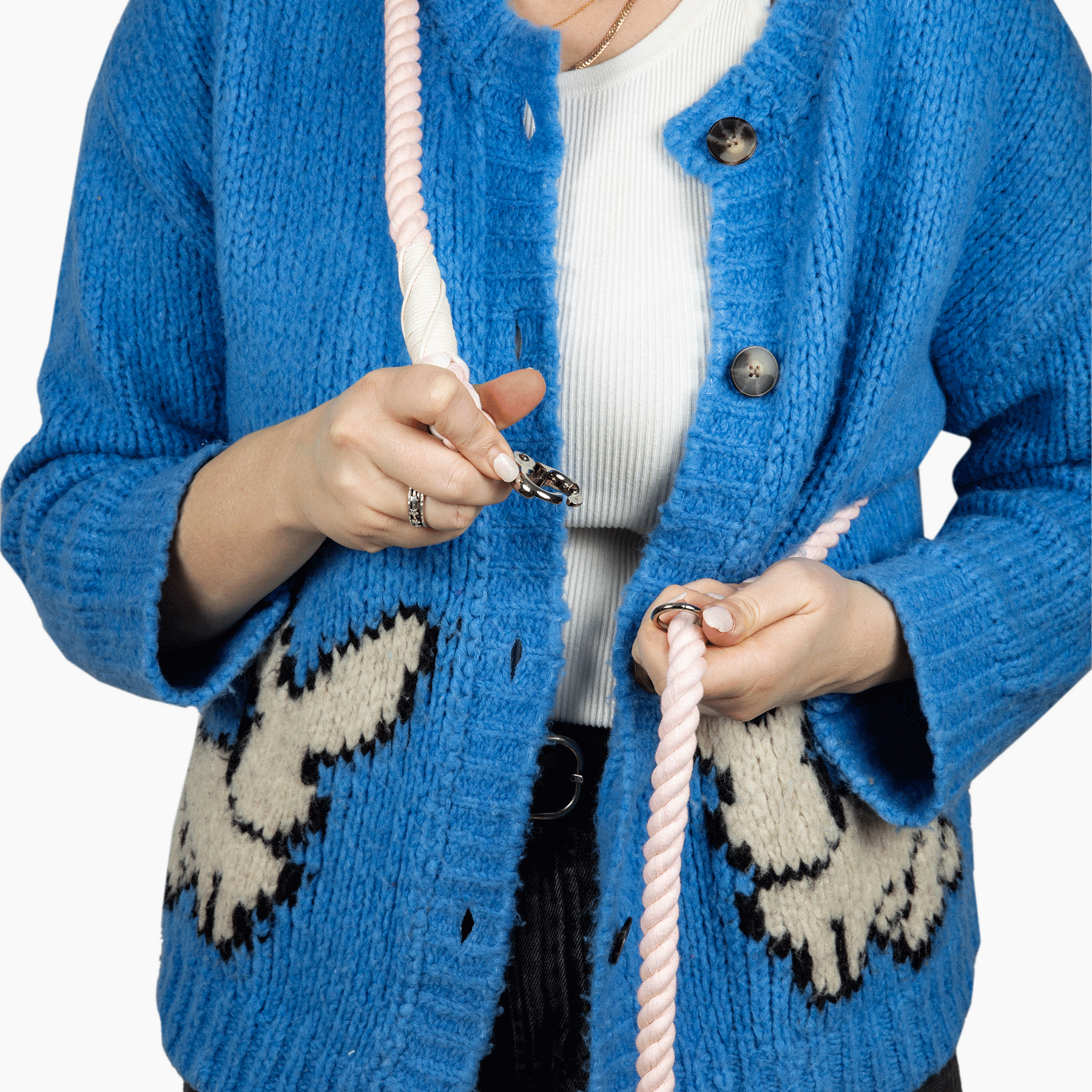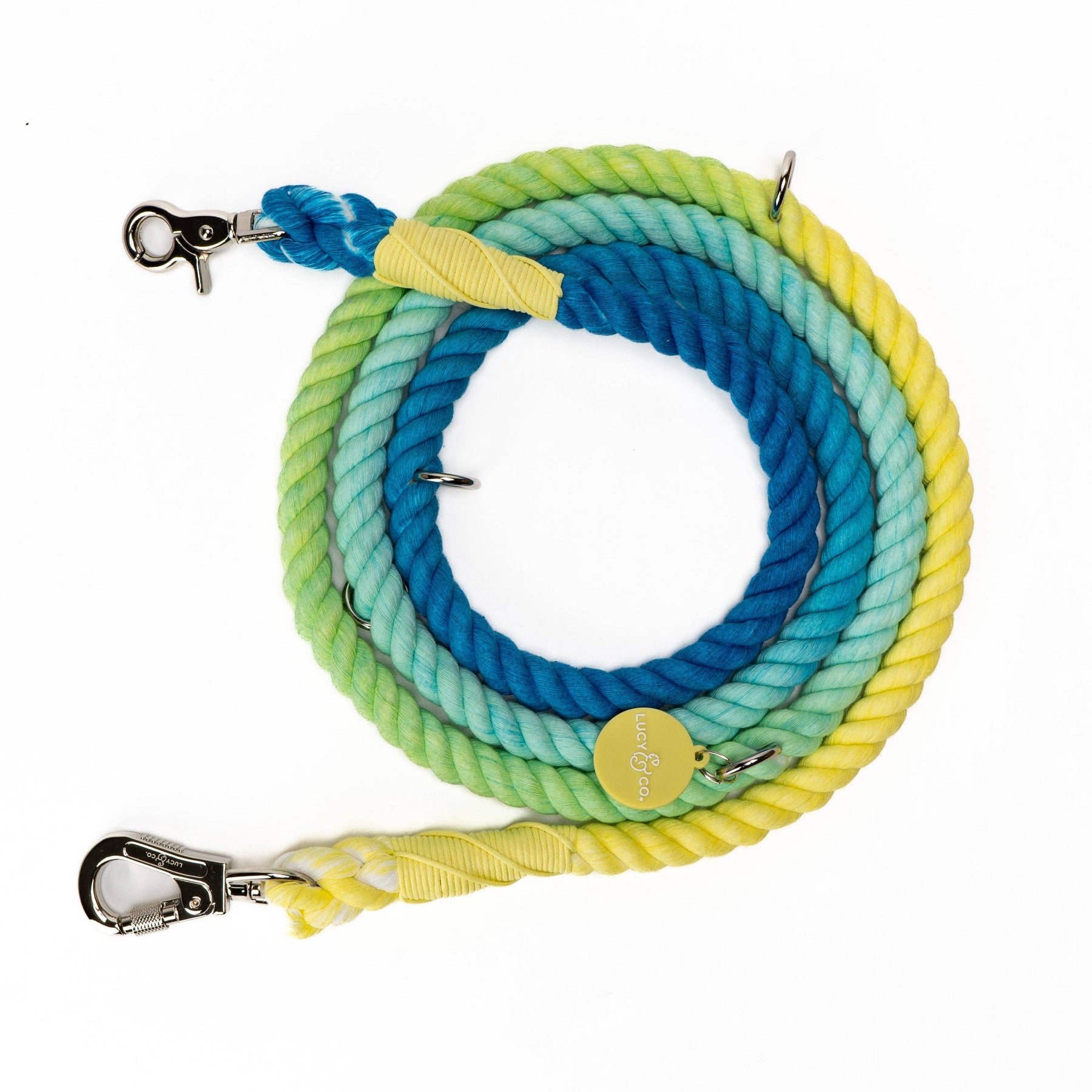 Let your pup explore more, hands-free with our Bolt of Energy Hands-Free Rope Leash! Stretch your legs and your pup's with its 7.5 foot length, and experience peace of mind with the premium lockable clasp. Get creative and mix-and-match between the four adjustable O-rings and two clasps for a variety of hands-free options. Plus, the 100% cotton rope and natural dye provide a safe, comfortable, and stylish walk. No leash woes here!