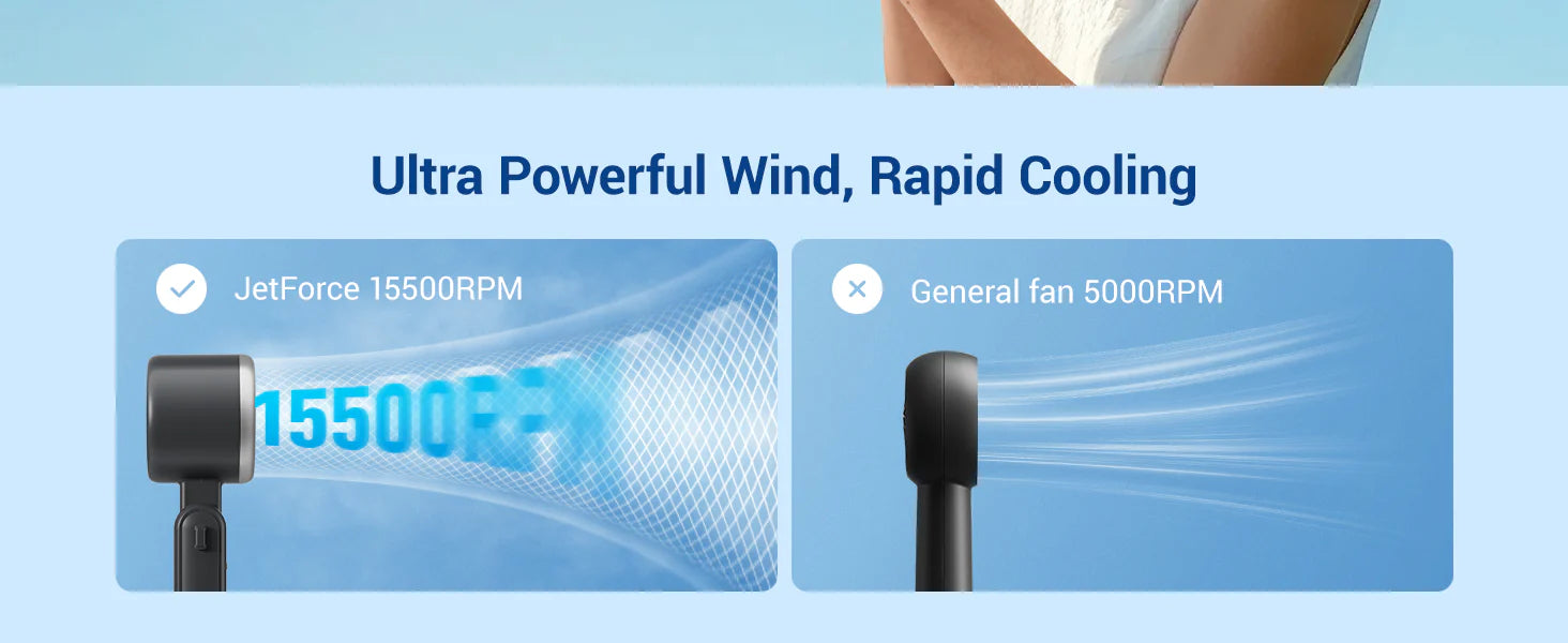 Powerful Performance: With a high-speed three-phase brushless motor and advanced 6-blade design, enjoy a maximum wind speed of up to 10m/s and 13,500 rpm, perfect for beating the heat during hot journeys.