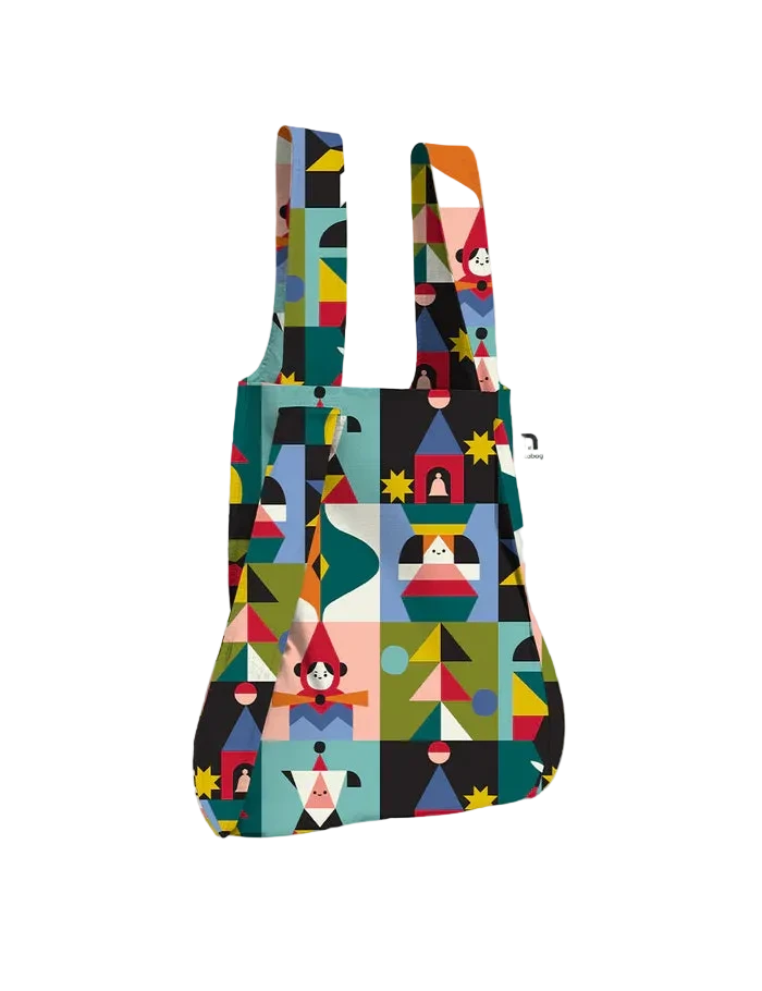 Notabag is the smart combination of a bag and a backpack. It transforms with a single pull on the straps, so you can put it on your back and free your hands.