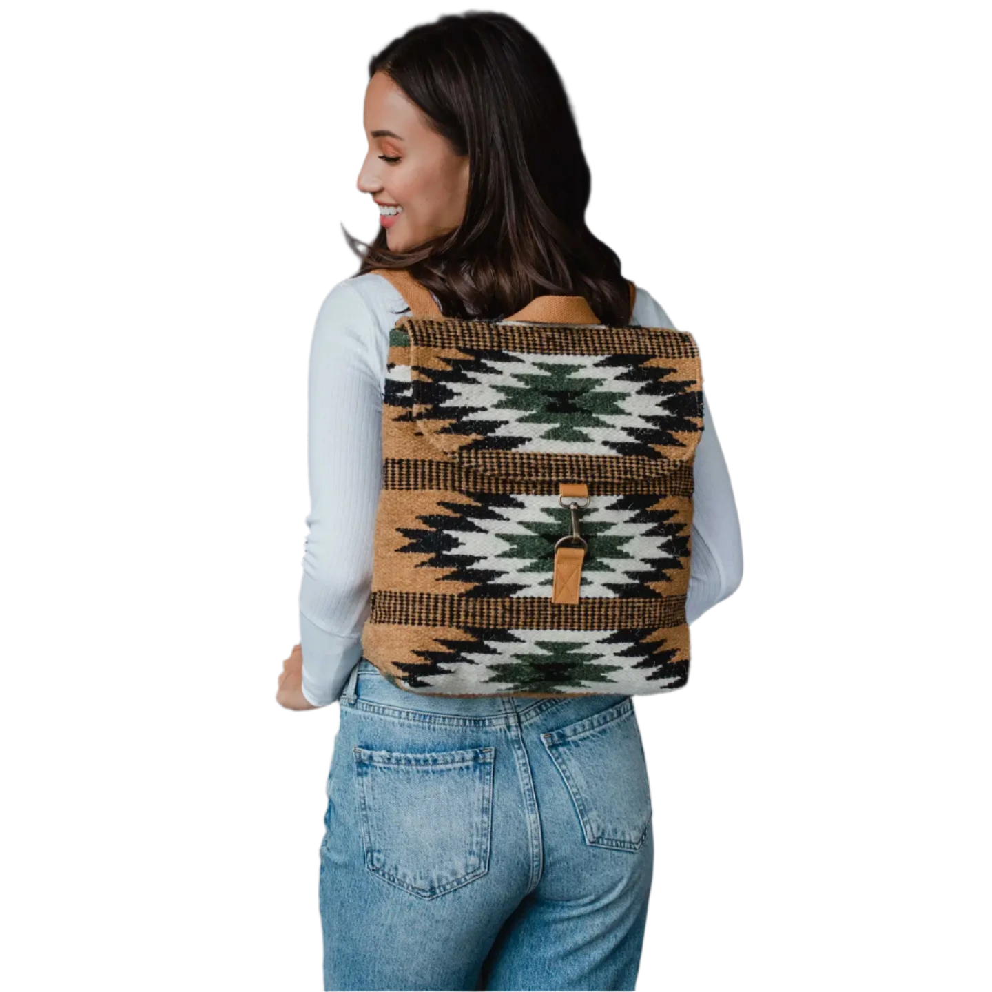 Brown, black, green & cream Aztec backpack
