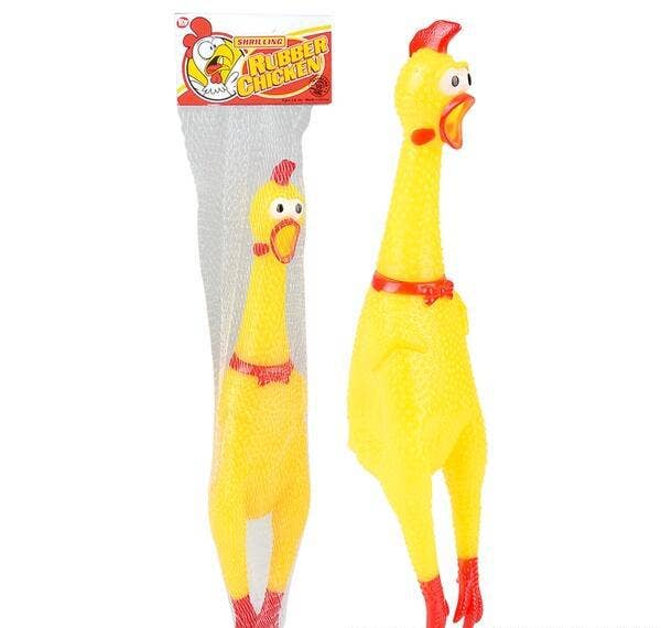 16.5-inch Screeching Chicken Packaged in a poly bag. Ages 3+