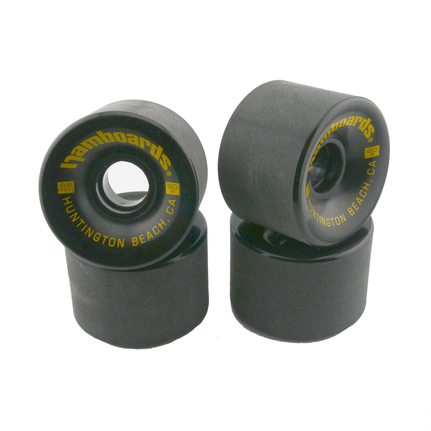 With a durometer of 78-80A. Our premium cast polyurethane wheels are buttery smooth and are a perfect complement for our HST trucks.