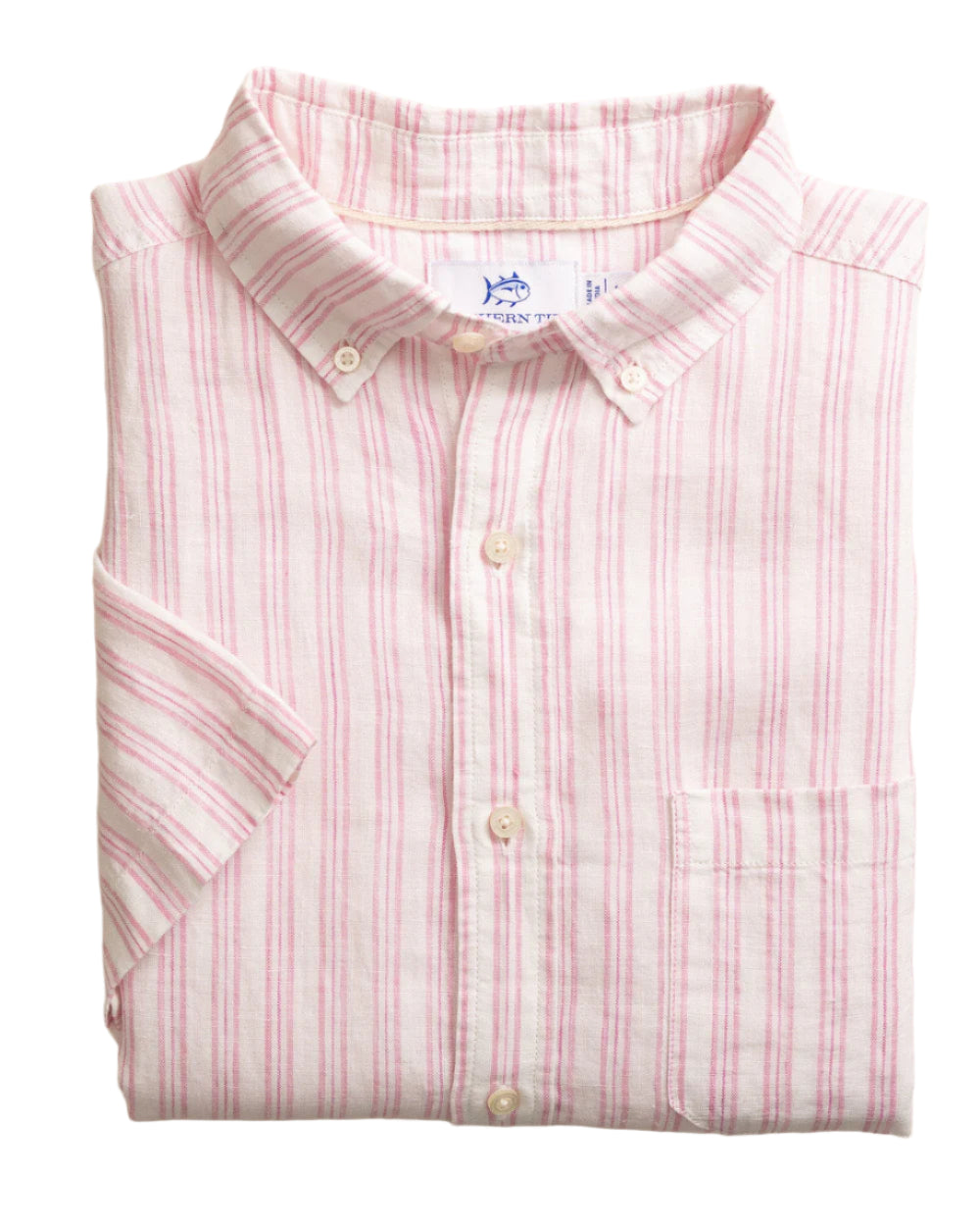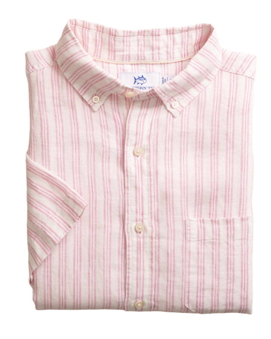 Crepe Myrtle Striped Linen Short Sleeve Sportshirt