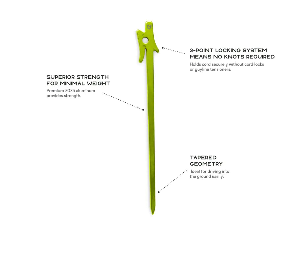 - Smart three-point locking system holds cord and eliminates the need for knots, cord locks, or guyline tensioners.