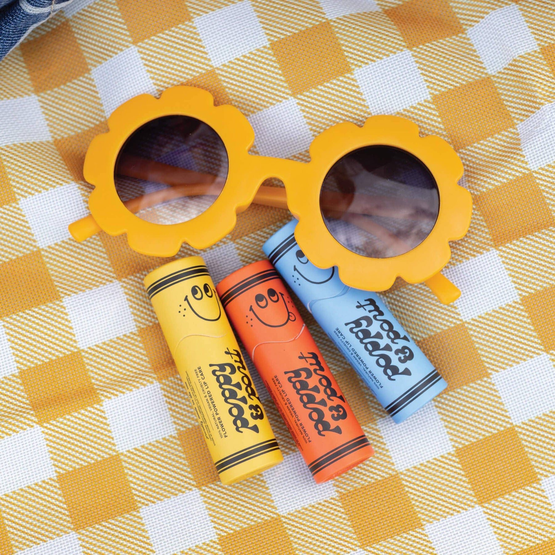 Introducing our newest lip balm collection: Lil' Poppies! These 100% natural, vegan lip balms are perfect for little ones that just can't keep their hands off your lip balm. These fun, fruity flavors and interactive tube design were made with our kiddos in mind! Bloo Razzeloo is our take on a sour blue raspberry flavor. 100% Natural | Cruelty-Free (Leaping Bunny Certified) | Eco-Friendly