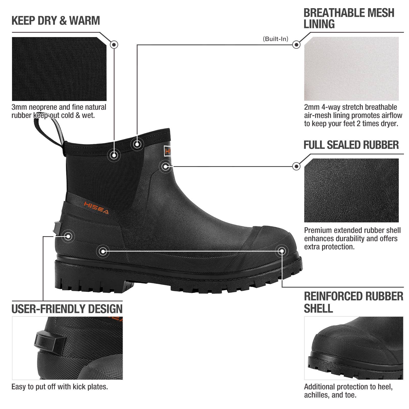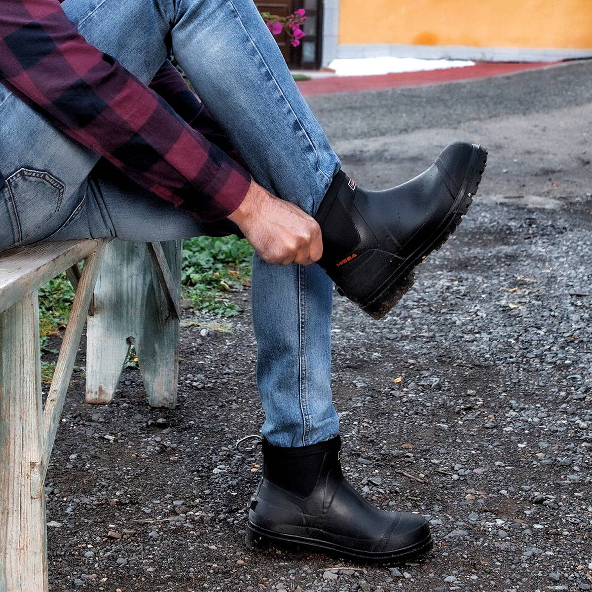 ⭐Ideal for landscaping and other general outdoor work, these classic men's rubber Work Boots keep feet dry and comfortable all day long. The 5 mm neoprene is waterproof and shock-absorbent.