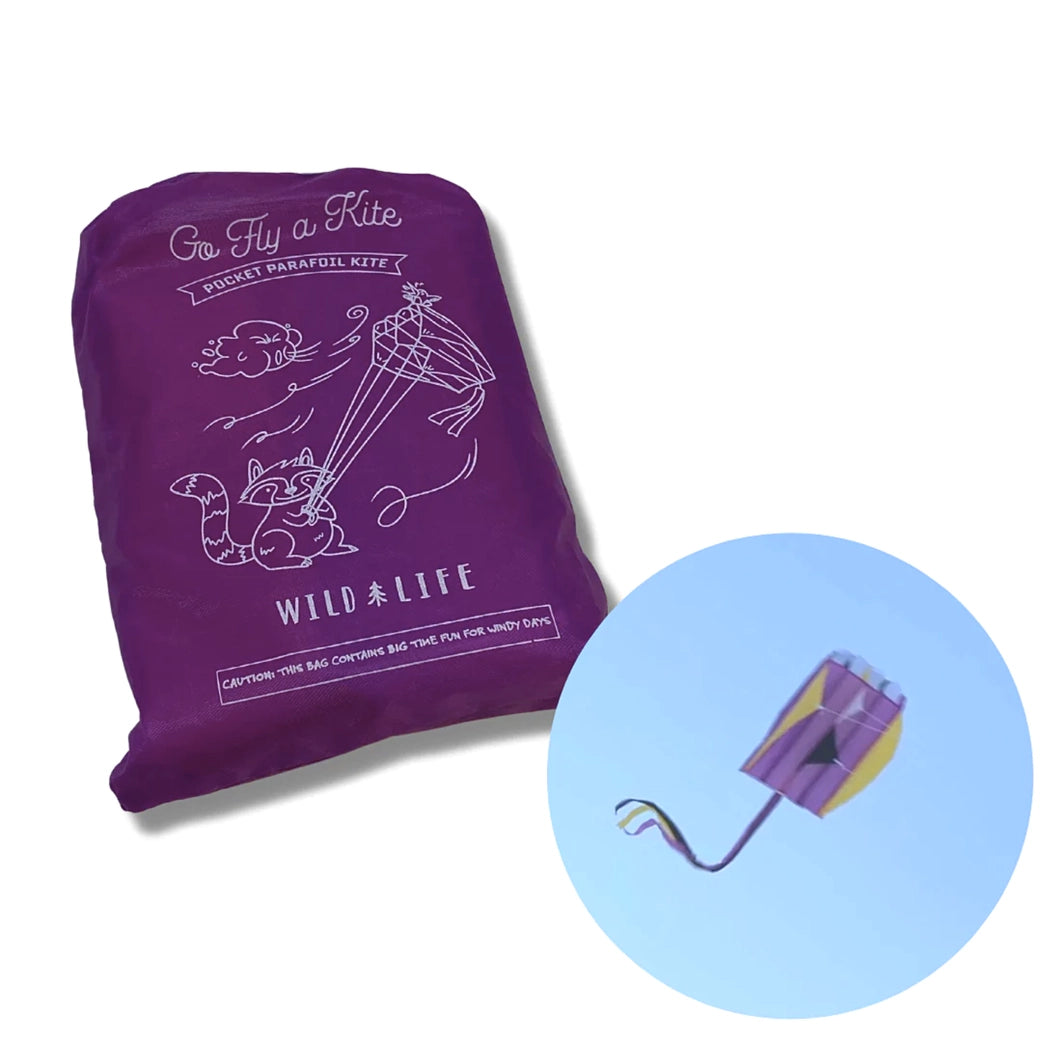 Our pocket parafoil kite is easy to bring along on outings, this compact kite requires no assembly, so it’s ready to fly the minute you pull it out of your pocket. * Measures 23" x 18" when opened. * Contains a 14' designed tail. * No assembly necessary. * Strings, handle and kite all included in the pouch.