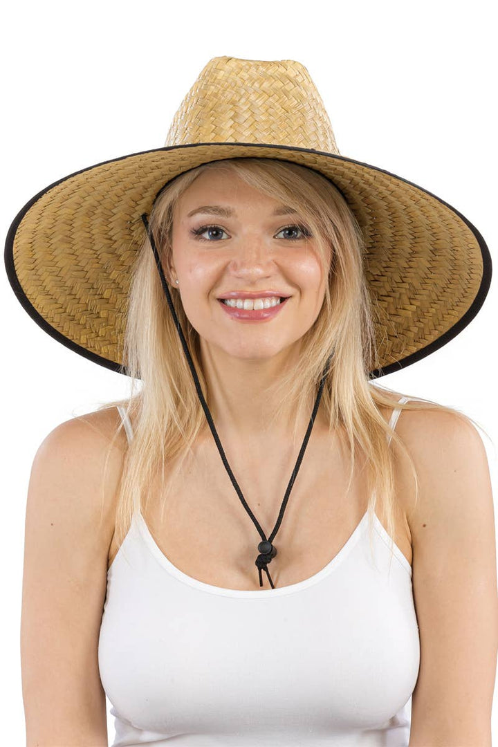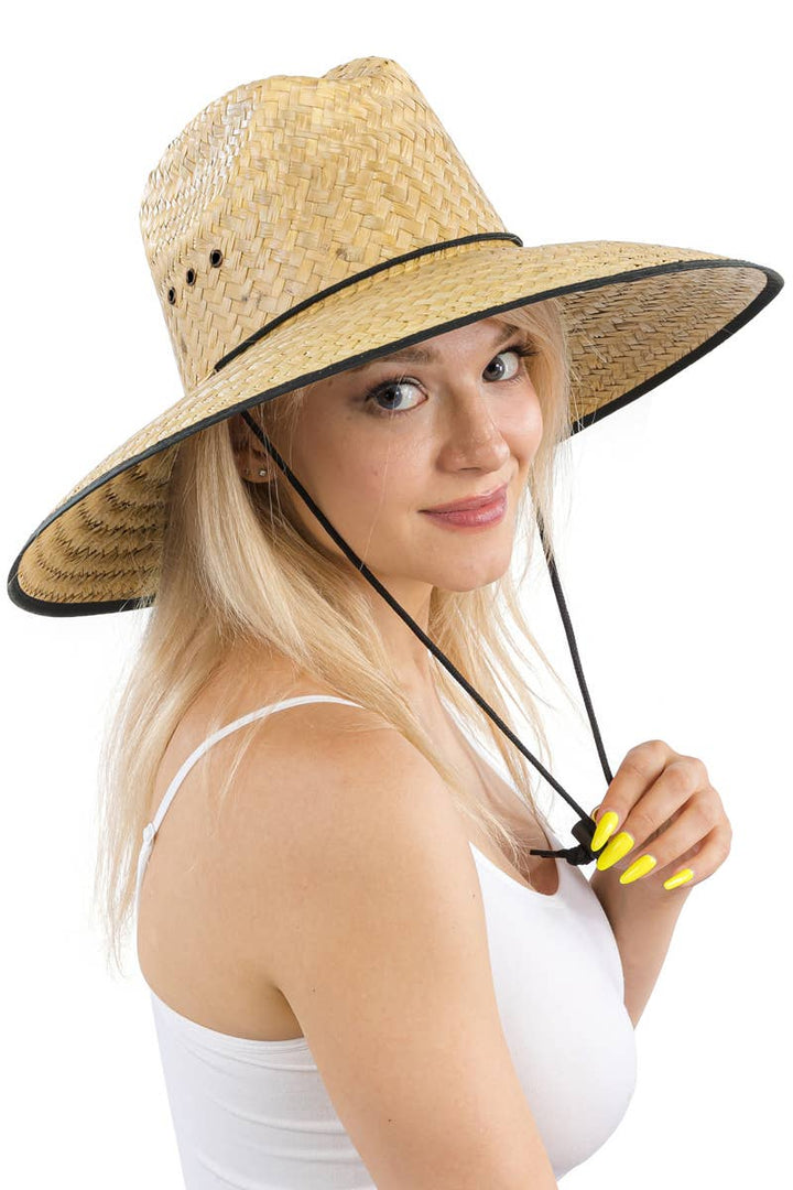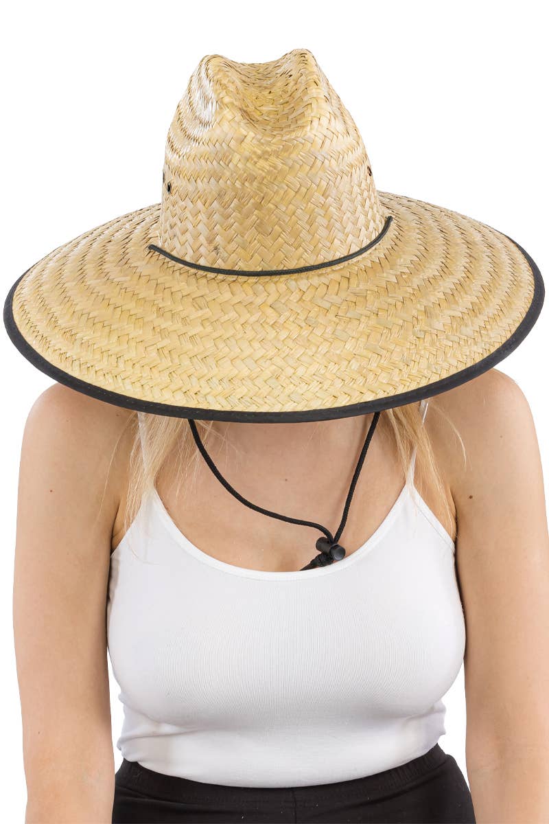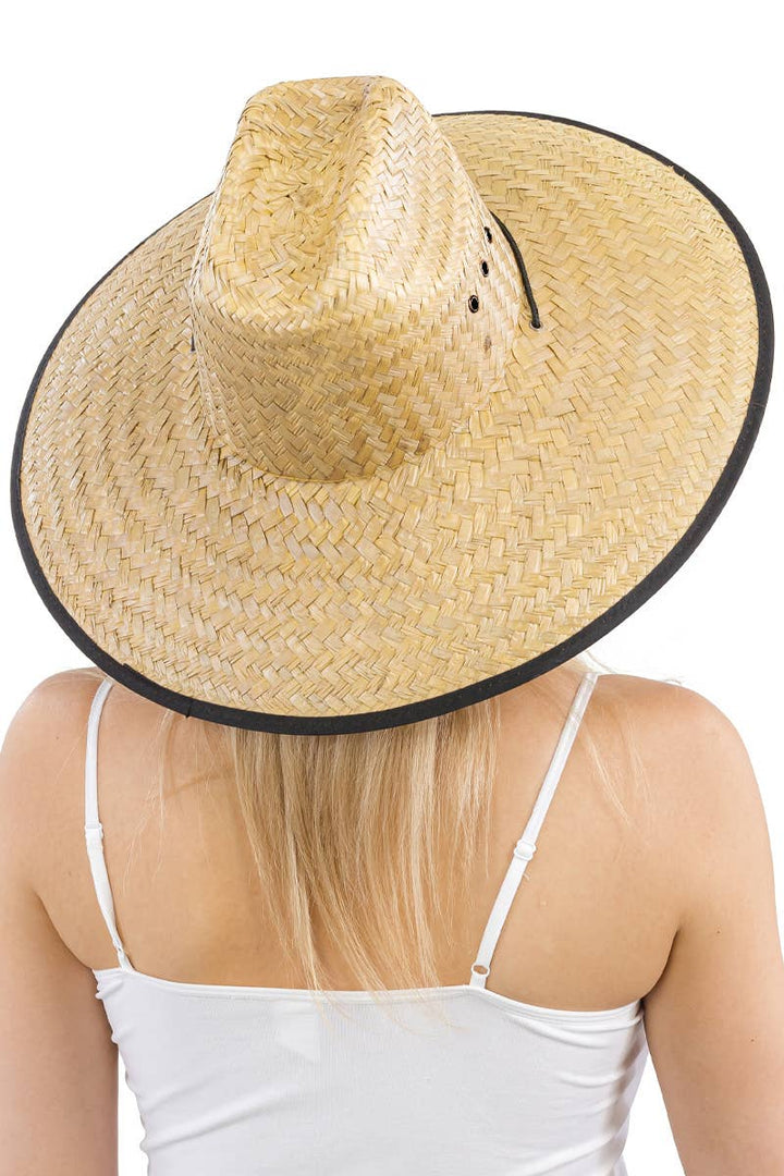 Get ready to make a statement with the Quarterhorse Wide Dome Brim Natural Straw Outdoor Lifeguard Hat! Complete with an eyeleted closed tight weave upper Quarterhorse Crown, matte black grosgrain fabric trim edges, and a brim size of 5.25", this hat is sure to turn heads. Plus, with dimensions of 18.5" * 17" * 8", it's the perfect fit for any head size (AKA M/L, about 55cm-58cm)! Don't worry about any imperfections, as the unique manufacturing process ensures each hat has its own burnt spot marks and uneven textures.