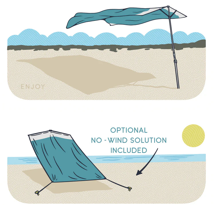 Optional No-Wind Kit included - Enjoy the convenience of our optional No-Wind Kit, included for those very rare calm beach days or when the breeze is gentle and shifting, giving you peace of mind for every beach outing.