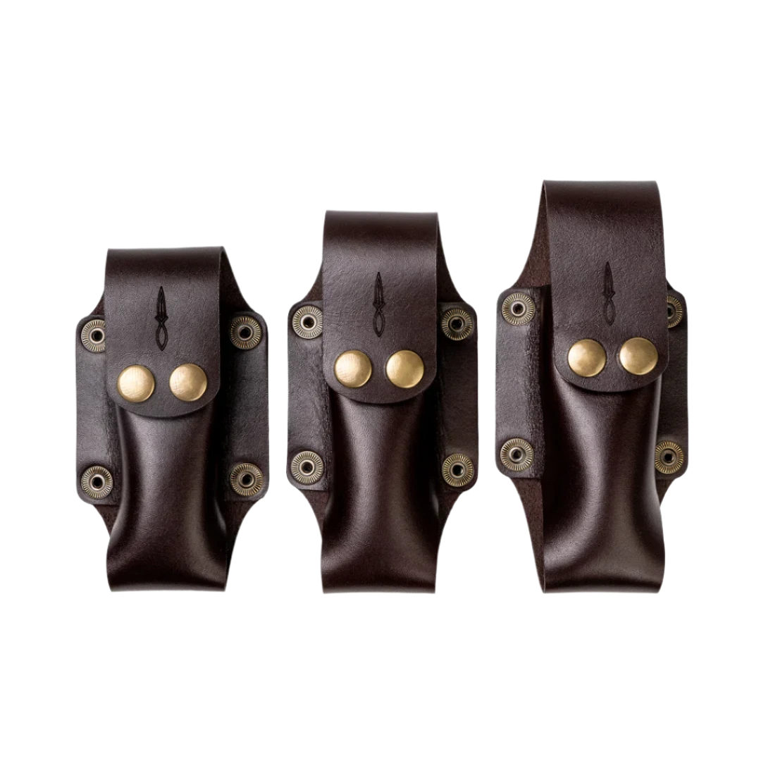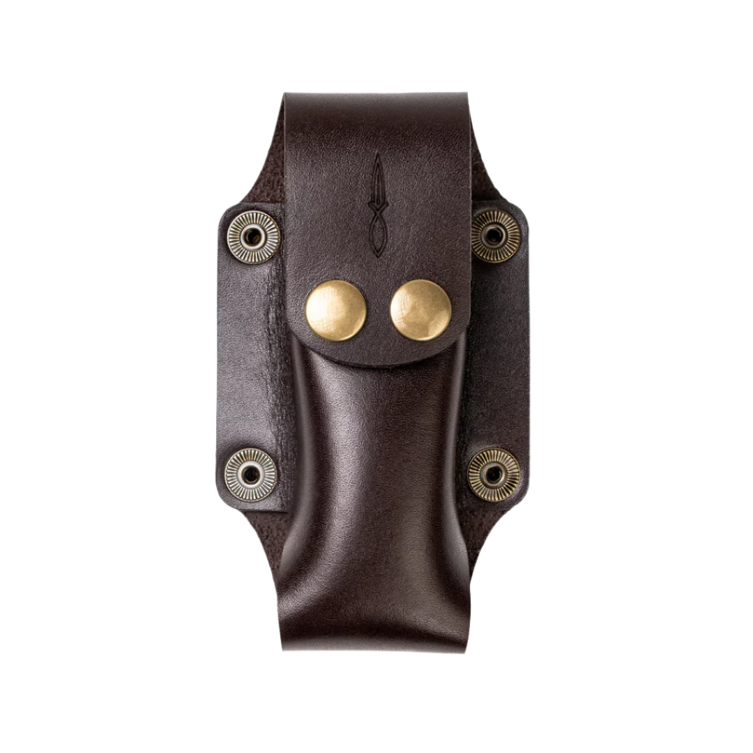 The Universal Knife Sheath fits knives and multitools from Leatherman, Victorinox, Opinel, SOG, and more. Using the Daggerfish Strap Snap system, this sheath lets you carry your favorite knife vertically or horizontally on your belt, and switch from one position to another in just a few seconds.