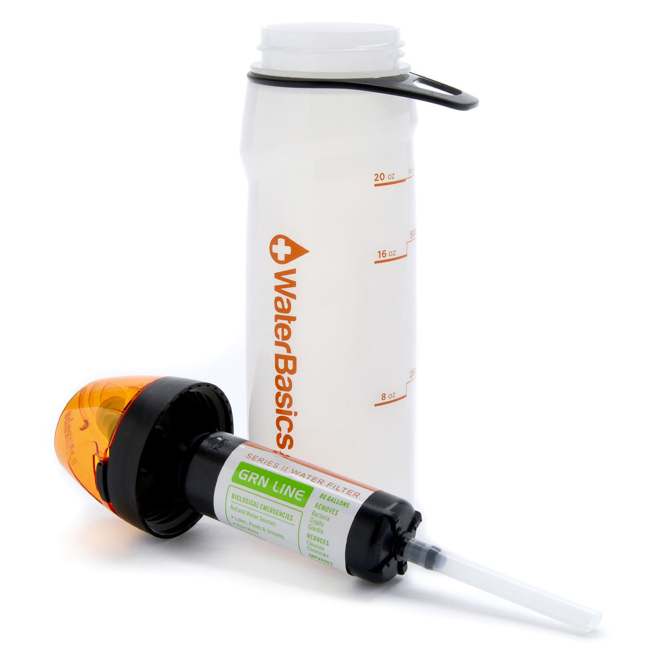 The WaterBasics GRN Line Filtered Water Bottle is the perfect way to enjoy great tasting, filtered water with just a squeeze and a sip. The simple to use design makes it easy to have fresh, clean, filtered water at home, at the office, in the gym, or for all kinds of outdoor activities. When you drink from a WaterBasics GRN Line Filtered Water Bottle, you are assured of a thoroughly tested and proven level of biological protection that includes protection from bacteria, protozoans and chemical and biological toxins. The high flow properties of the GRN Line filter make the WaterBasics GRN Line Filtered Water bottle as easy to drink from as sipping soda through a straw. With a price point closer to a basic taste and odor filter than a powerful biological grade filter, it’s not only possible, but prudent to carry a GRN Line filtered water bottle everywhere you go. For the cost of 20 liters of bottled water, you can enjoy over 300 liters of filtered water with the assurance of GRN Line protection.